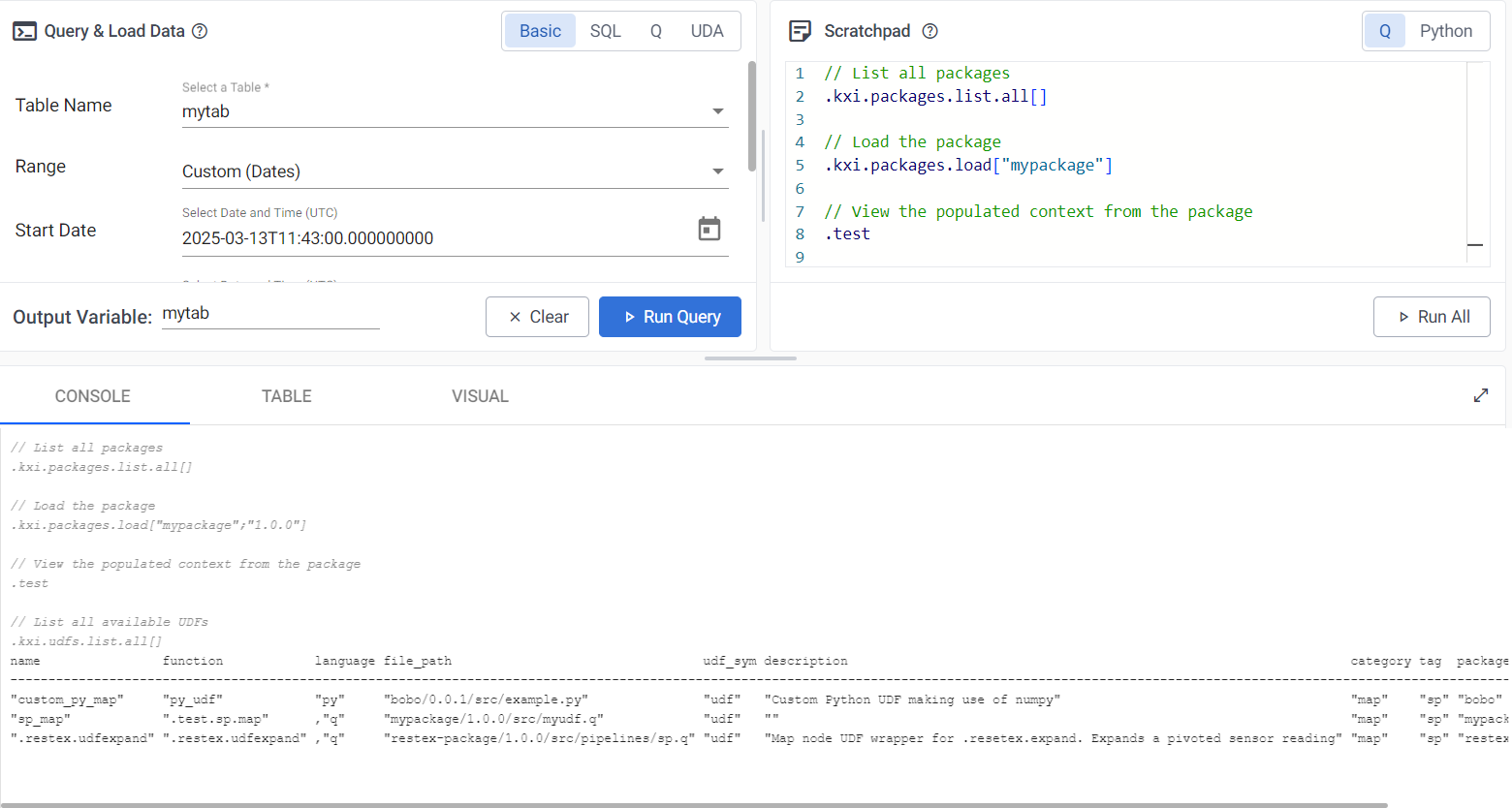Query data by using the package functions within the query scratchpad panel of the web interface or within the command line interface (CLI).