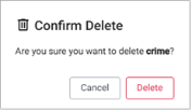 A Confirm Delete dialog opens, showing the name of table for deletion. Click Delete to proceed.