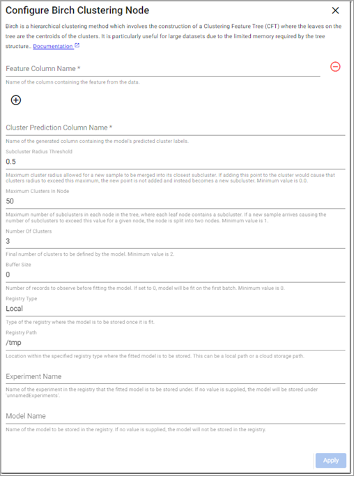 Maximum number of subclusters in each node in the tree, where each leaf node contains a subcluster. If a new sample arrives causing the number of subclusters to exceed this value for a given node, the node is split into two nodes. Minimum value is |