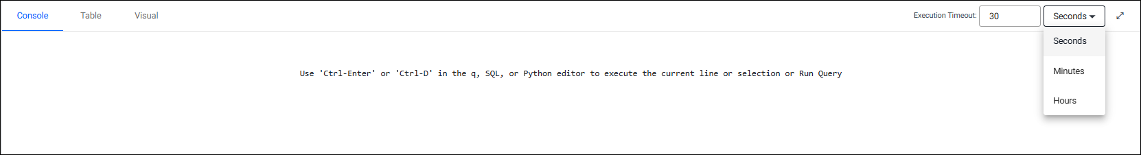 Click on either the q or Python tab on the Scratchpad, depending on your language preference and enter your query. Note that when you use Python, only the first line of code is processed.