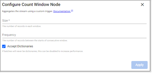 When Use Count Trigger is selected, this field is the maximum number of records to buffer before emitting automatically. |