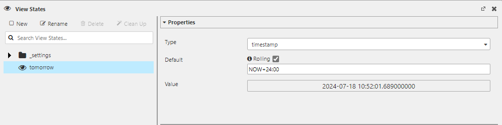 Create a view state called tomorrow with rolling syntax set to NOW+24:00