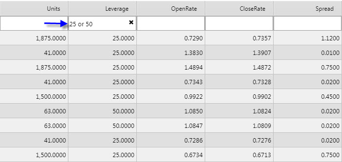 Select one of the filtering options:
