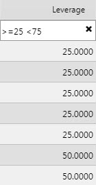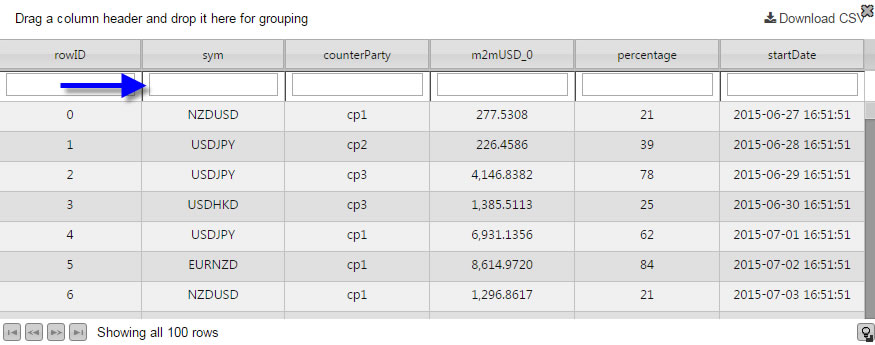 Columns with Display Names: Symbol, Counter Party, %, and Start Date