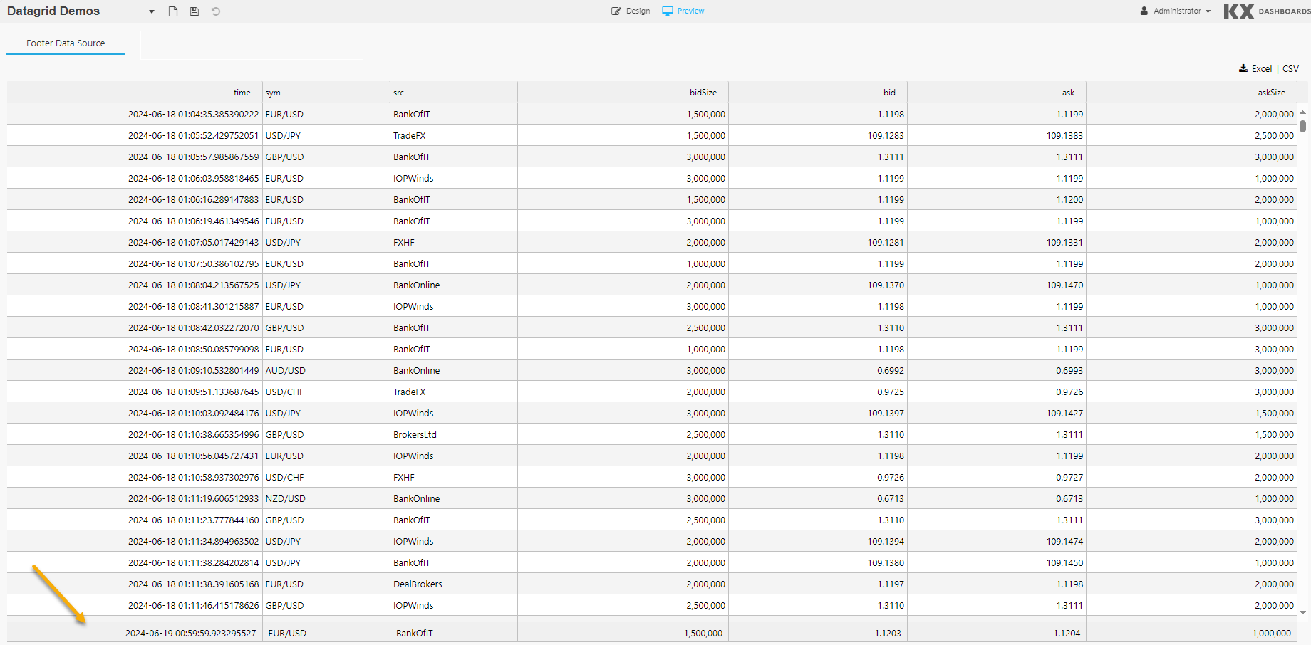 This Data Source property can be used to provide customized values in the footer section of the Data Grid, as shown in the following example.