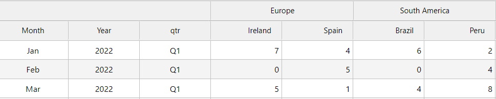 Each column name returned by this data source becomes an additional option to choose from in the dropdown list of available footers. Only the first row of values resulting from this data source are presented in the footer section of the Data Grid. |
