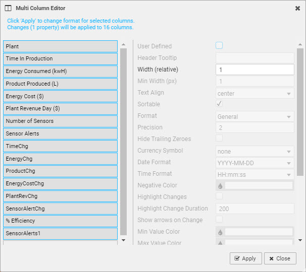 For each individual column in your Data Grid there is a section defining how its data is formatted. These properties are defined in the following table.