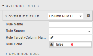 Override Rules enable you to define custom logic that is applied consistently across all columns. By using text matching or regular expressions (regex), you can set visual styling or behaviors without needing to configure each column individually. This makes it easy to visually distinguish column based on names or other text.