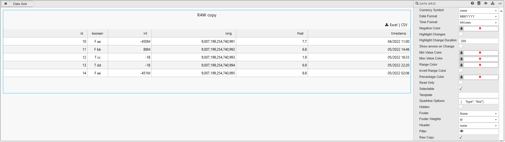 The following sections provides details on how to configure the properties of the Data Grid component.