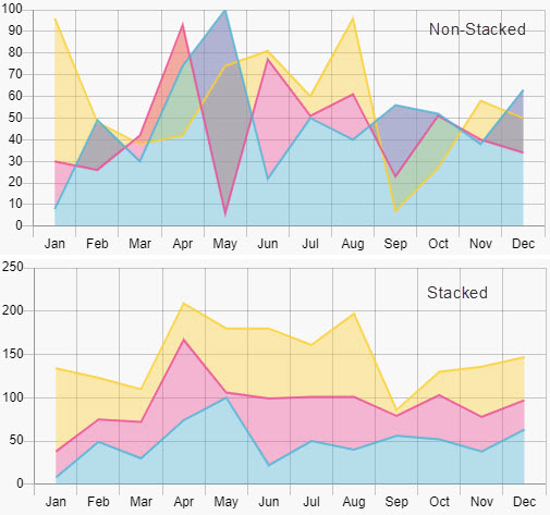 When intersect is selected, only bubbles, points or bars that are hovered over are shown in a potential tooltip. Lines do not count as points and will not trigger a tooltip, therefore line points must have a radius in order to be hoverable. Note Due to limitation of the chart engine, highlight always appears based on the x-axis location. |