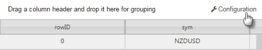 The Configuration dialog lets users change the display of columns in the Data Grid.