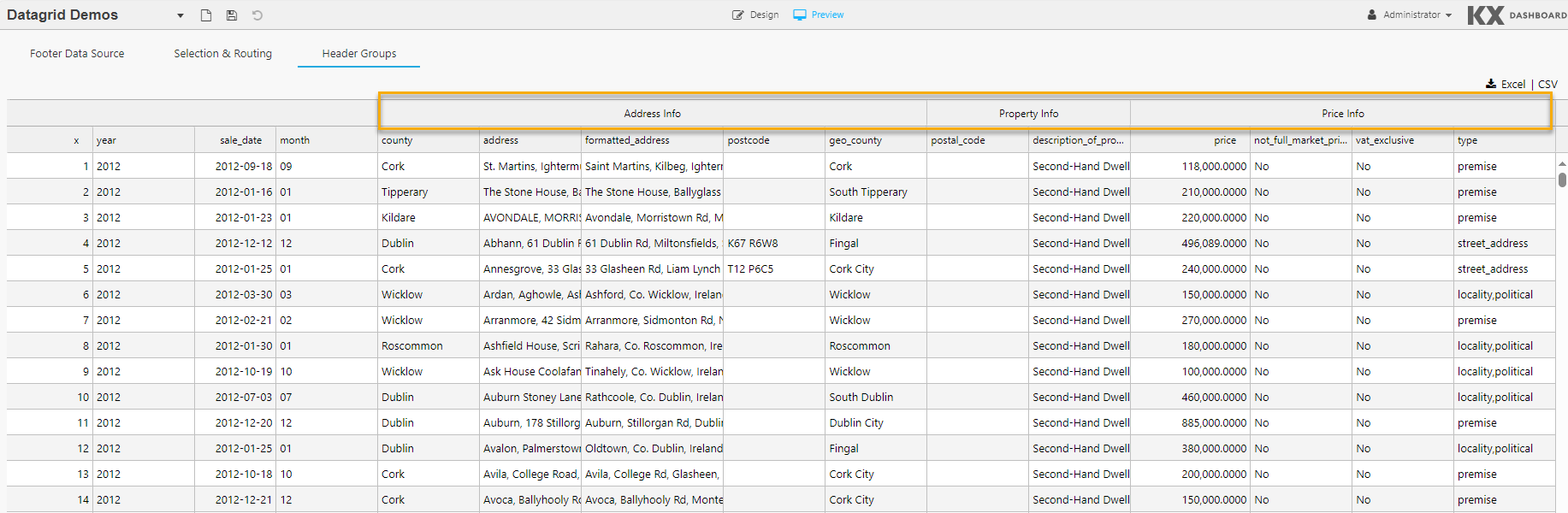 Data Grid properties