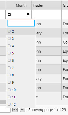 You can freeze one or more columns in the Data Grid. This allows the user to scroll horizontally through the Data Grid, while keeping some important columns visible at all times (such as ID or command column). This property defines the number of columns that are frozen starting at the first column to the left in the grid. |