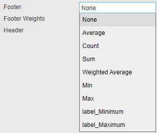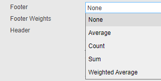 Each column name returned by this data source becomes an additional option to choose from in the dropdown list of available footers. Only the first row of values resulting from this data source are presented in the footer section of the Data Grid. |