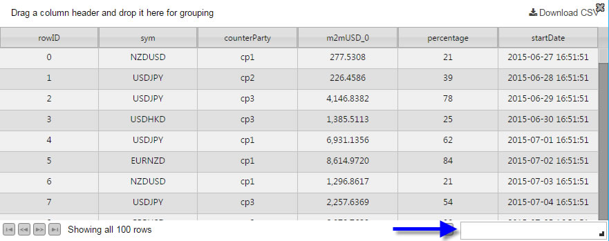 Columns with Display Names: Symbol, Counter Party, %, and Start Date