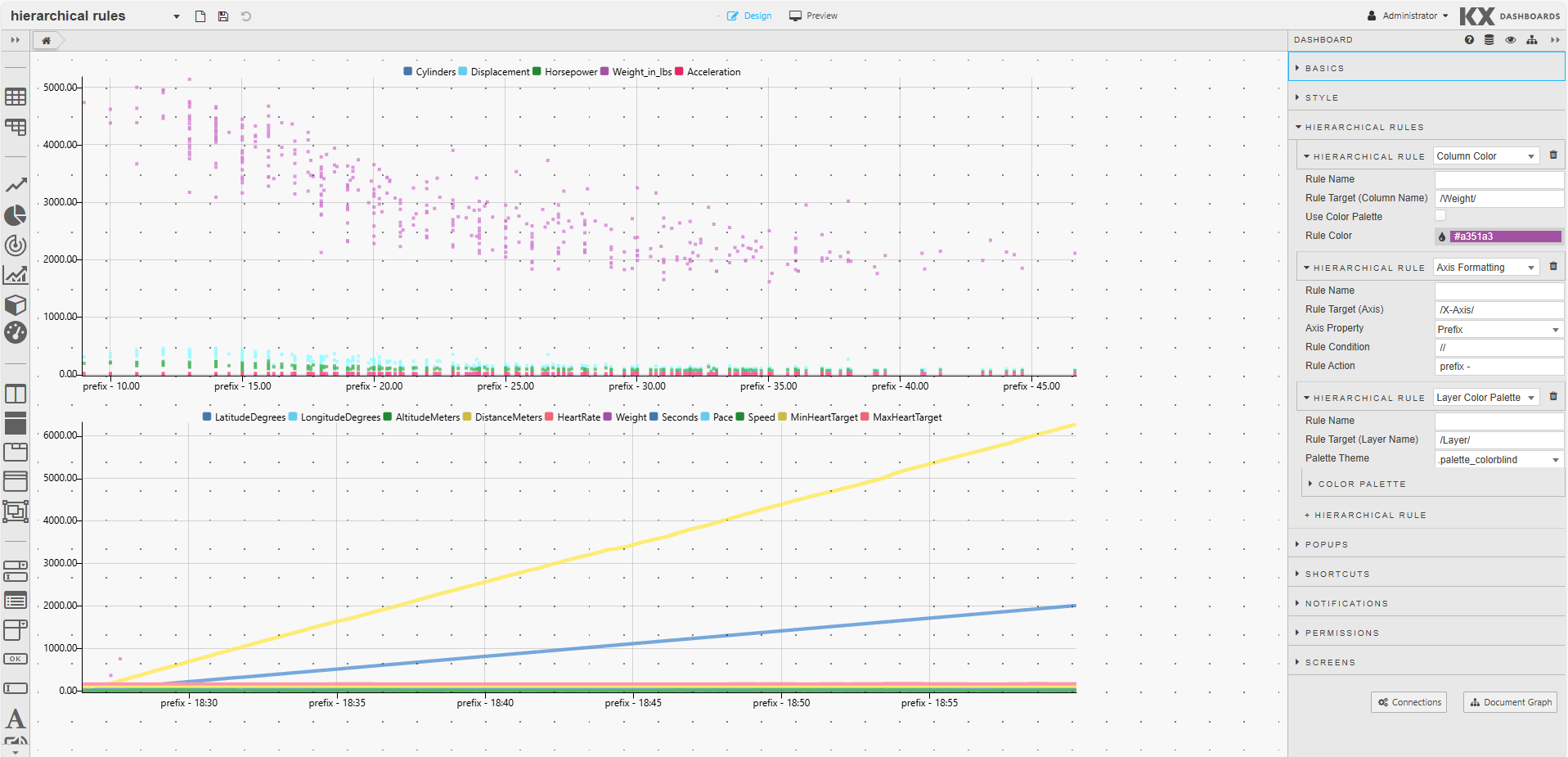 To use these rules in a component, set Inherit Hierarchical Rules in the component's Basics properties. (Note: This feature is currently supported only for ChartGL).