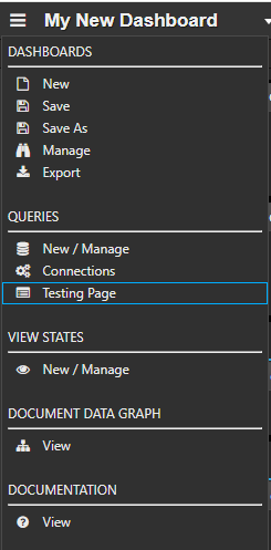 The Testing Page displays performance information for dashboard queries, allowing you to monitor execution behavior while dashboards are in use.